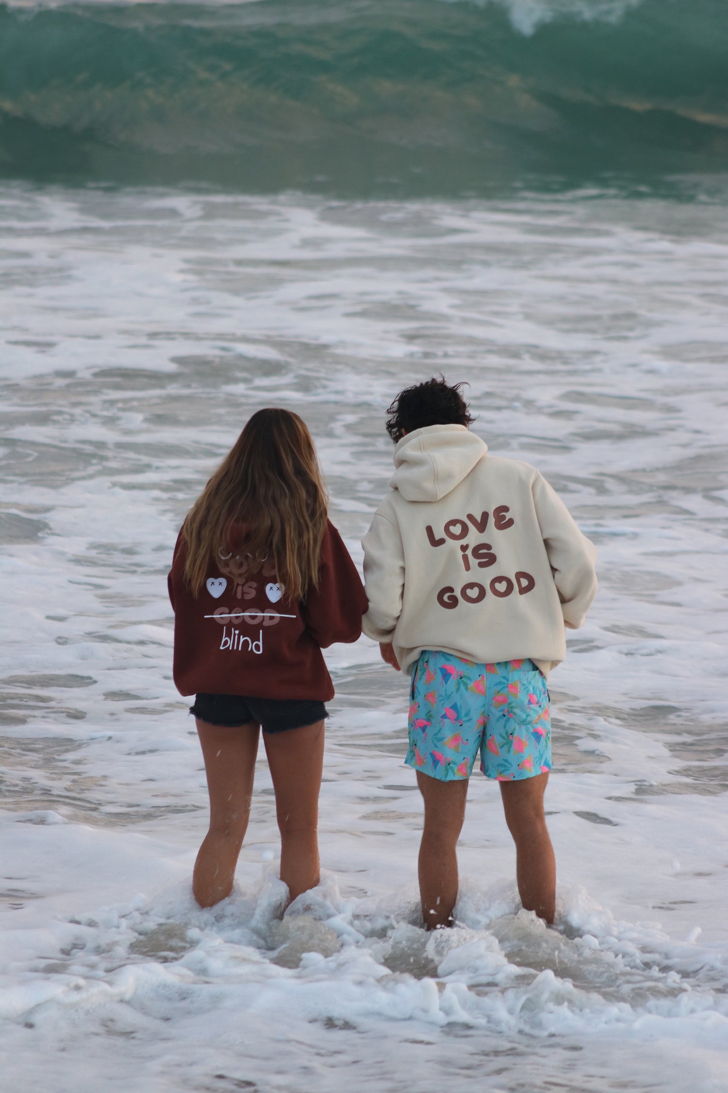 Both models here are wearing a size L in our classic hoodie. For people sized 5'10 it has a loose fit and for people 5'6 and lower is gives an oversized look.