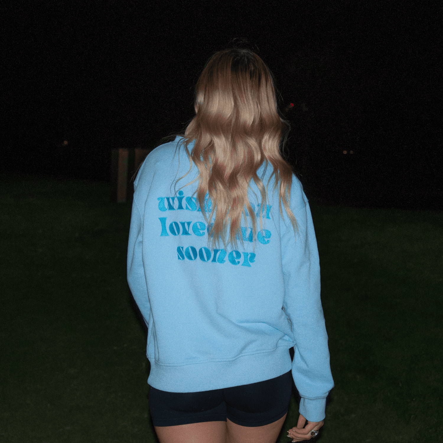 Our 5'4 model is wearing a size Small in our "WYLMS" crewneck to give her a fitted but still loose fit.